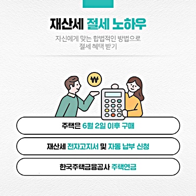 과세기준일인 6월 1일을 기준으로 주택 보유 여부에 따라 재산세가 과세되기 때문에 주택을 구매할 예정이라면 과세기준일을 피하는 것이 좋다. 주택을 구매할 때는 6월 2일 이후로 잔금을 치르고, 주택을 판매한다면 5월 31일 이전에 잔금을 처리하는 것이 좋다.