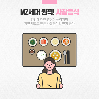 ‘사찰음식’도 템플스테이의 인기 요인 중 하나입니다. 사찰 음식은 유제품을 제외한 모든 동물성 식품과 오신채(파, 마늘, 부추, 달래, 아위)를 금지하는 음식으로 자연 재료로 만든 천연 조미료를 사용하고, 발효 방법을 활용한 다양한 음식들을 말합니다. 최근 MZ세대 사이에서 건강에 대한 관심이 높아지면서 ‘헬시플레저(Healthy Pleasure)’, 즐거운 건강 관리, 지속적인 건강 관리를 지향하는 사람들이 늘어나며 한국 고유의 비건 음식이라고 할 수 있는 사찰 음식도 주목받고 있습니다.
