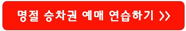 코레일은 8월 25일 오후 14시부터 '명절 승차권 예매 전용 홈페이지'를 사전 운영합니다. 회원번호와 비밀번호를 확인할 수 있고, 명절 승차권 예약과정을 미리 체험하거나 열차 시간표를 안내받을 수 있습니다. 미리 연습하시면 예매 시 어려움을 확인하고 준비할 수 있을 것입니다.