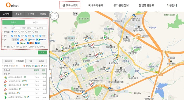 싼 주유소 찾기 오피넷