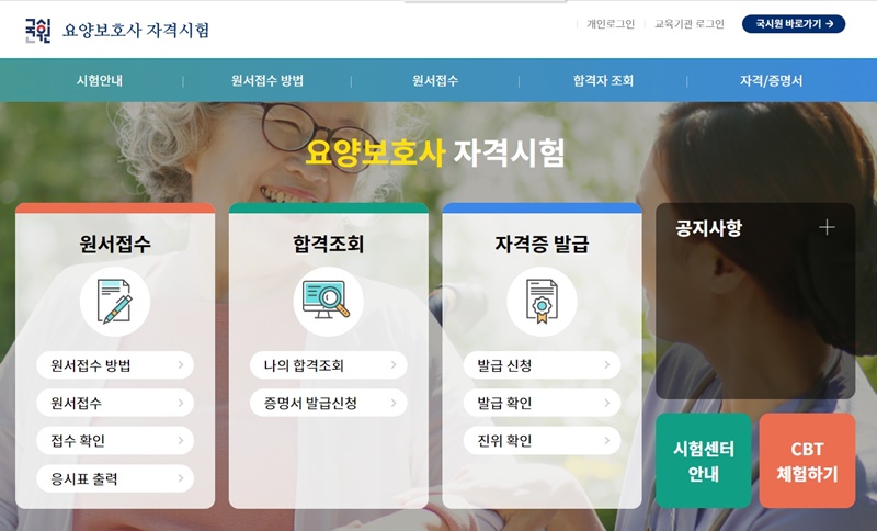 또한 원서접수 및 이후 합격조회, 그리고 자격증 발급과정에 대해 궁금하신 분은 요양보호사 자격시험 홈페이지에서 자세한 내용을 확인 할 수 있습니다.