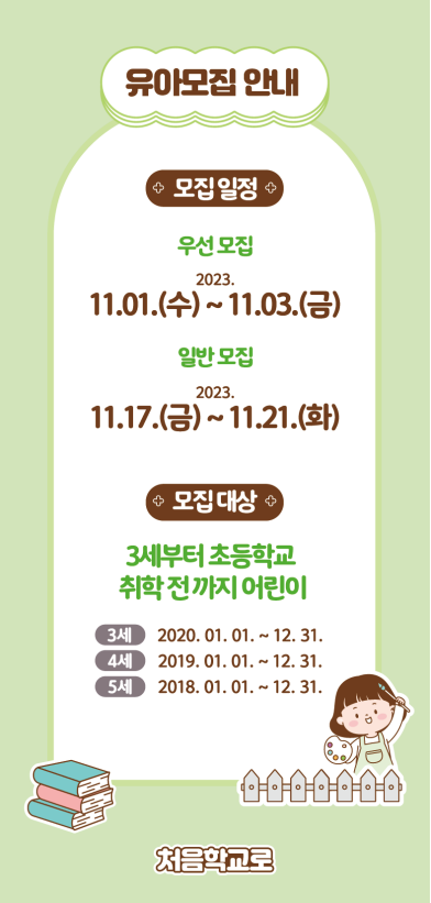 11월 1일부터 2024학년도 유치원의 유아 모집이 시작됩니다.