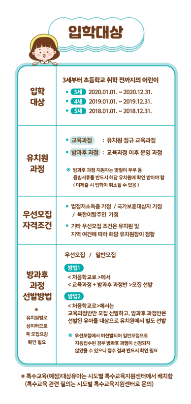 2024학년도에 국립, 공립, 사립 유치원에 입학하길 원하는 만 3세 ~ 초등학교 취학 전까지의 유아입니다.