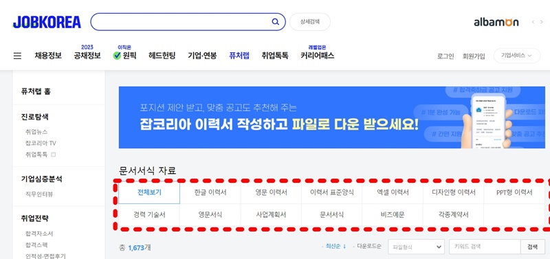 잡코리아 문서서식 자료를 무료 다운로드할 수 있는 곳
