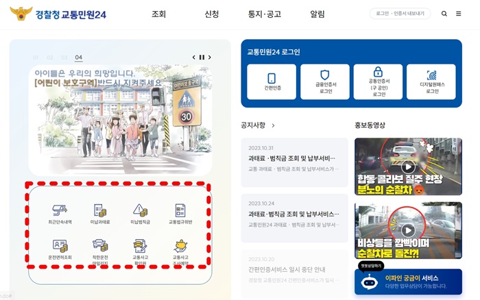 신호위반 과태료 조회나 범칙금 등의 조회는 경찰청 공식 홈페이지에서 확인이 가능합니다.