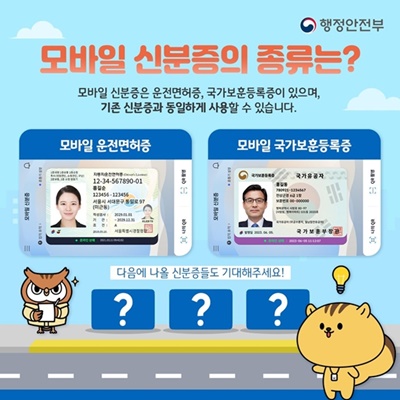 모바일 신분증은 현재 모바일 운전면허증과 국가보훈등록증을 발급받을 수 있으며, 추후 주민등록증도 확대할 예정이라고 합니다.