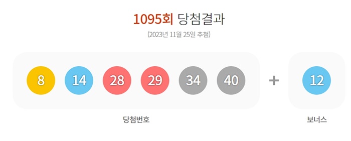 2023년 11월 25일 (토) 1095회 로또 당첨번호는