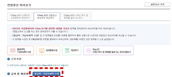 ✅ [STEP.02] 연말정산 예상세액 계산하기를 클릭합니다.