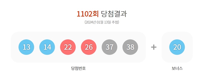 2024년 1월 13일 (토) 1102회 로또 당첨번호는