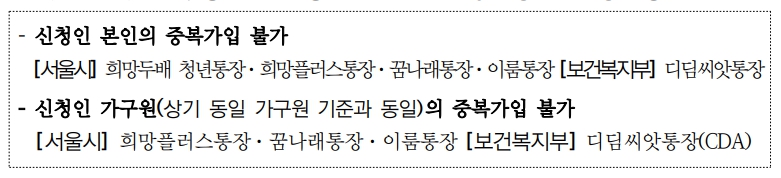 단, 다음의 항목 중 하나라도 해당되는 경우 신청 제외