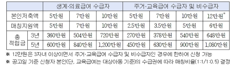 약정 주요 내용 : 저축 이행 (매칭 지원액을 지급받기 위한 조건) 계약