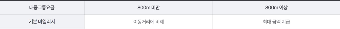 대중교통 1회 이용 시 이동거리 최대 800m까지 인정되며, 월 15회 미만 이용 시 적립액은 소멸됩니다.