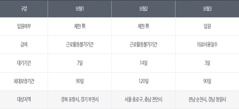 ** 예) 택배기사, 골절 -> 병원에 입원하지 않아도 일을 못하는 기간 동안 지급